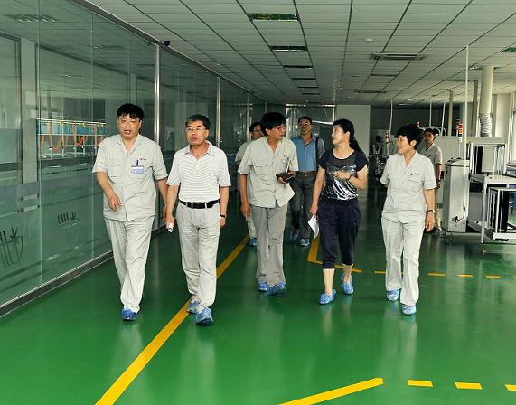 _ 市中級人民法院副院長劉奇(左二),凌河區(qū)法院院長黃萍(右二)到我集團生產現(xiàn)場實地調研。