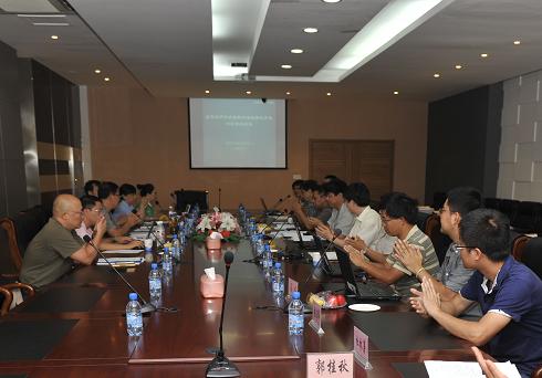 左一科技部科技評估中心張春鵬,左二中科院高能物理所研究員劉宇,左三中科院聲學(xué)所朱敏,左四科技部科研條件與財務(wù)司處長孫增奇,右一中科院聲學(xué)所鄧鍇,右二中科院聲學(xué)所張向軍,右三中科院聲學(xué)所吳健波,右四中科院聲學(xué)所張兆偉。