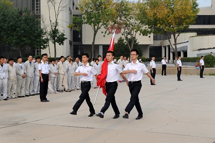 雖然在學校參加了大大小小的升旗儀式也有一年之久了,經(jīng)驗也算比較豐富的了,但是在航星集團,在這么多員工面前升旗我還是第一次。這不僅僅是一次升旗,這還是向集團的員工們展示我們的機會,我們來到這里,一舉一動都代表著學校的形象,再加上上屆學長的表現(xiàn)非常出色,這讓我感覺到無比的壓力。所以在得到升旗任務的時候我們就開始準備了,經(jīng)過幾次的篩選,選出了包括我在內(nèi)的幾個護旗手,他們都是方隊出身,隊列動作過硬,是護旗手的不二人選。再有就是升旗的隊形排列,之前的學長設計得非常好,但是我們想有所創(chuàng)新,在我們幾個負責人的精心設計之下,我們又設計出了一個屬于我們自己的隊形。之后就是無數(shù)次的演練,每個環(huán)節(jié),從入場,旗手交接旗,升旗,揚旗,都經(jīng)過了研究和排練。