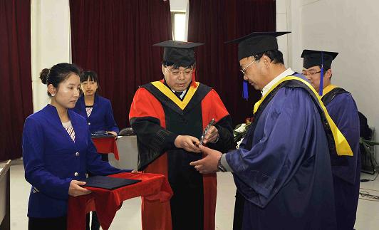 儀式在激情洋溢的樂(lè)曲中開(kāi)始。首先大連海事大學(xué)信息科學(xué)技術(shù)學(xué)院自動(dòng)化系主任李暉宣讀首批工程碩士名單。獲得大連海事大學(xué)首批工程碩士名單如下:北方航海公司王洪余、邱琦、范世偉、李忠曄、王德利、宿利楠、李海洋、王曉紅、李娜、儀表公司李鋼、海天科技公司黃帥。每一位畢業(yè)生聽(tīng)到自己的名字時(shí),都沉浸在金榜題名的幸福之中。集團(tuán)團(tuán)委書(shū)記黃亮專門(mén)為畢業(yè)生們發(fā)來(lái)賀信,并希望集團(tuán)青年員工以他們?yōu)榘駱樱粩嗉訌?qiáng)學(xué)習(xí),努力提高專業(yè)技能水平,增強(qiáng)責(zé)任感和使命感,為給予員工創(chuàng)造良好學(xué)習(xí)和工作環(huán)境的航星集團(tuán)做出更大貢獻(xiàn)。緊接著,11名碩士畢業(yè)生身著學(xué)士服、頭戴學(xué)士帽,在歡快的樂(lè)曲聲中,精神抖擻地走上主席臺(tái)。大連海事大學(xué)信息科學(xué)技術(shù)學(xué)院副院長(zhǎng)曹德信、集團(tuán)黨委書(shū)記、董事長(zhǎng)劉義為畢業(yè)生撥流蘇,進(jìn)行學(xué)位授予。當(dāng)工程碩士們從領(lǐng)導(dǎo)手中鄭重地接過(guò)學(xué)位證書(shū)的瞬間,激動(dòng)與喜悅之情溢于言表,他們向領(lǐng)導(dǎo)們深深鞠躬致謝。曹德信副院長(zhǎng)發(fā)表了熱情洋溢的講話。他首先祝賀11名工程碩士順利畢業(yè),并為他們?nèi)〉玫某煽?jī)感到驕傲,希望他們?cè)诠ぷ鲘徫簧夏軌蚴冀K堅(jiān)持學(xué)習(xí)、堅(jiān)韌不拔、愛(ài)崗敬業(yè)、腳踏實(shí)地地工作,為航星集團(tuán)的發(fā)展貢獻(xiàn)自己的力量。同時(shí),曹院長(zhǎng)祝愿畢業(yè)生們前程什錦,歡迎常回母校看看。